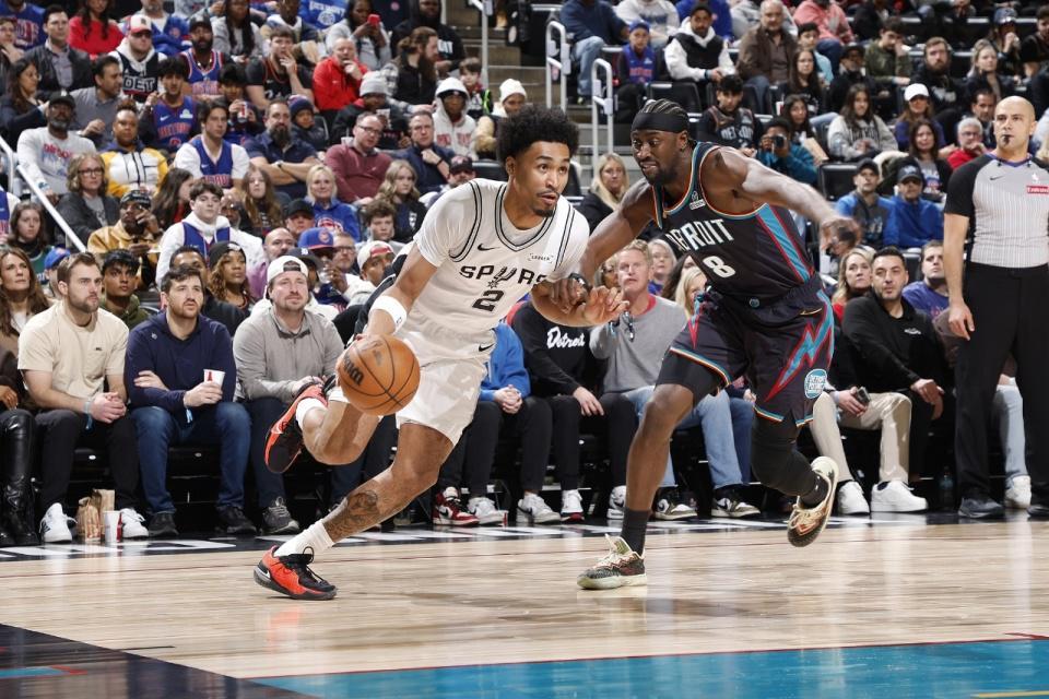 活塞过去5场收获5连胜位列联盟第一,马刺过去8场豪取8连胜稳居西部第二。本场马刺缺少普拉姆利与加西亚,活塞缺少斯图尔特与克林特曼。首节前3分钟,文班亚马外线三分开火,引领马刺内外开花率先取得14-2领先优势,活塞一波7-0攻势追分。福克斯上篮得分,活塞多点开花一波18-5攻势反超6分,尚帕尼三分命中,首节比赛结束马刺24-27落后活塞。首节马刺三分11中5,文班亚马6中2得到5+3与卡斯尔3记三分9分;活塞三分11中3,坎宁安6中1得到3+2+2与杜伦6+4。